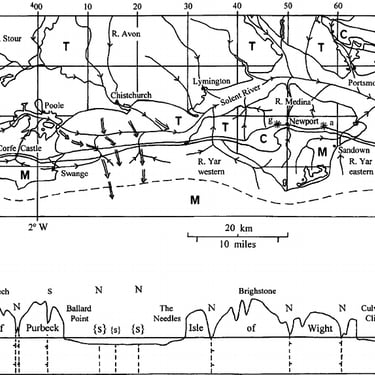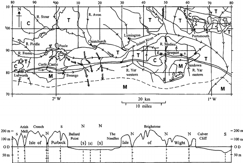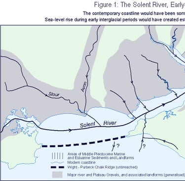 “Palaeogeography of the Solent River” — this reconstructs the ancient river-valley drainage system before the sea flooded in, showing the path of the now-extinct River Solent and its tributaries.